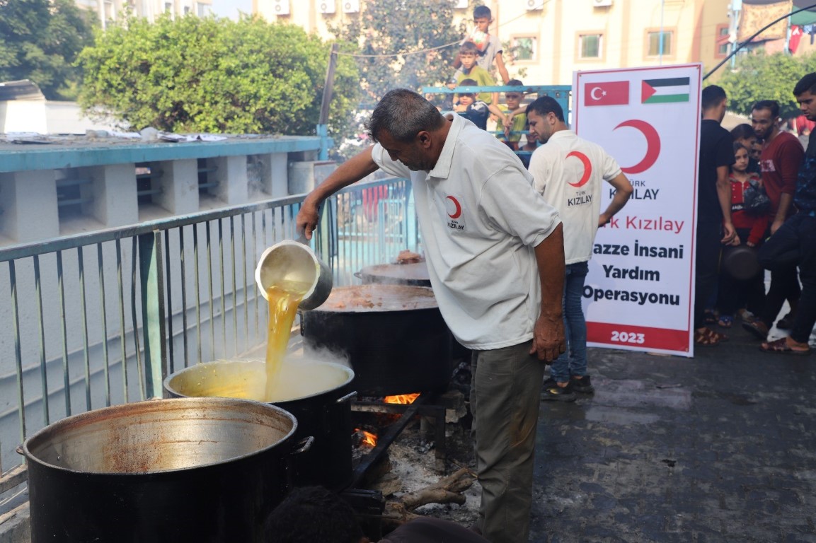 Gazın bittiği Gazzede Türk Kızılay yemekleri odun ateşinde pişiriyor