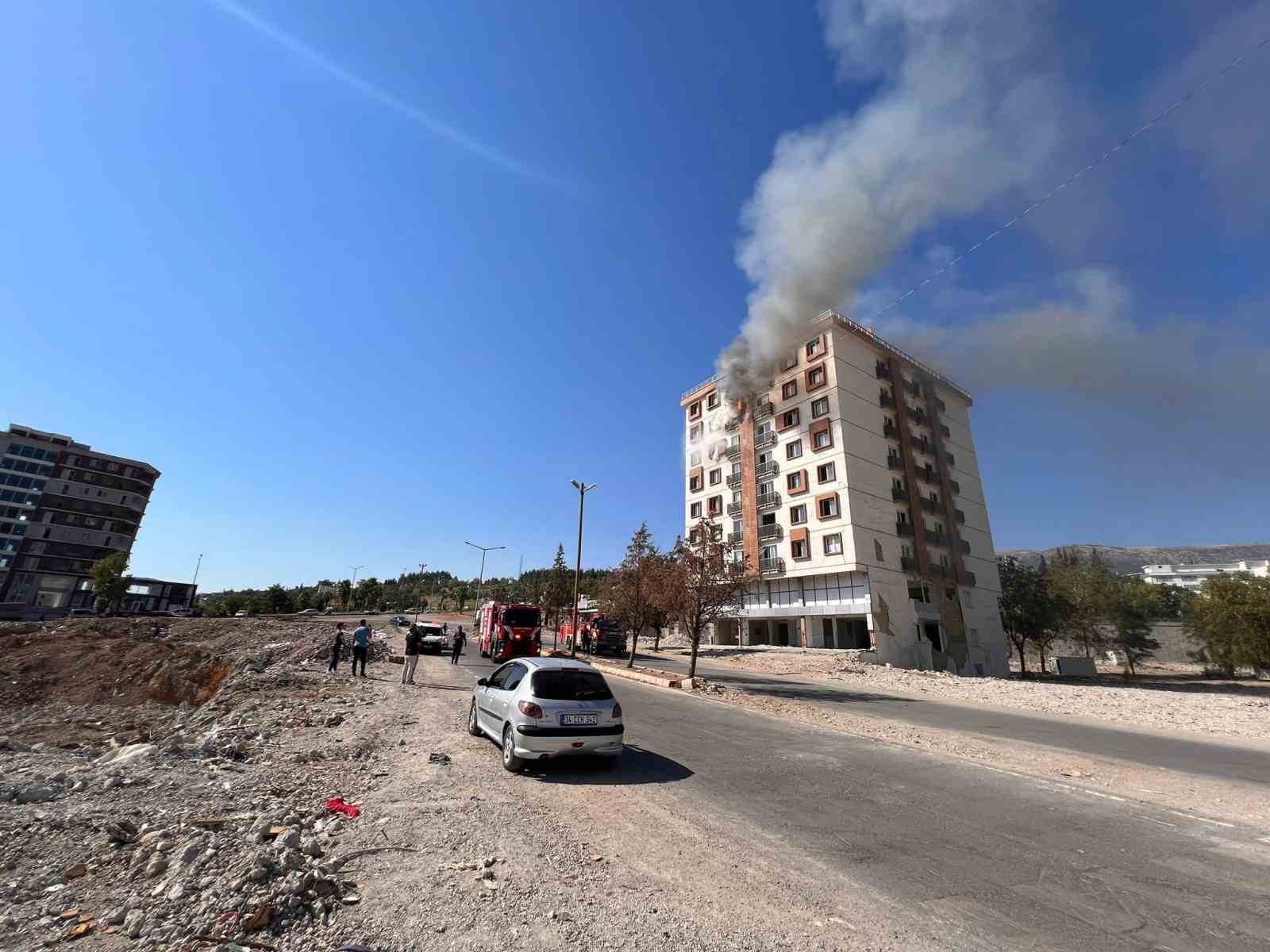 Ayakta kalan orta hasarlı binada yangın paniği
