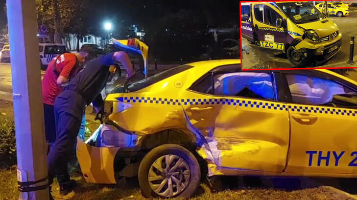 Üsküdarda kamyonet taksiye çarptı