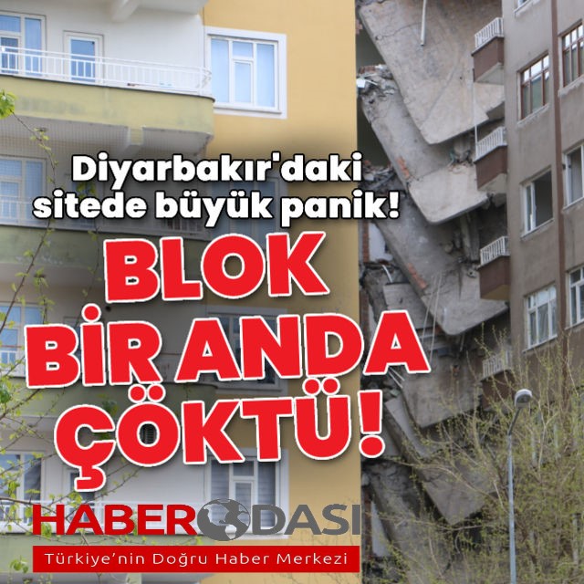 Diyarbakırda ağır hasarlı binanın bir kısmının çöküş anı kamerada