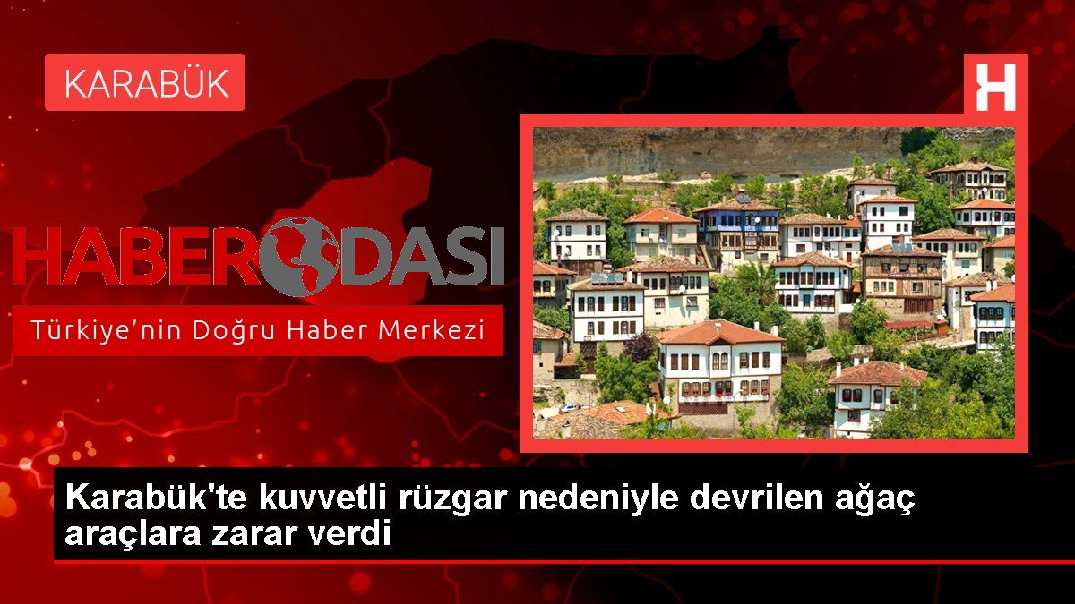 Karabükte kuvvetli rüzgar nedeniyle devrilen ağaç araçlara zarar verdi