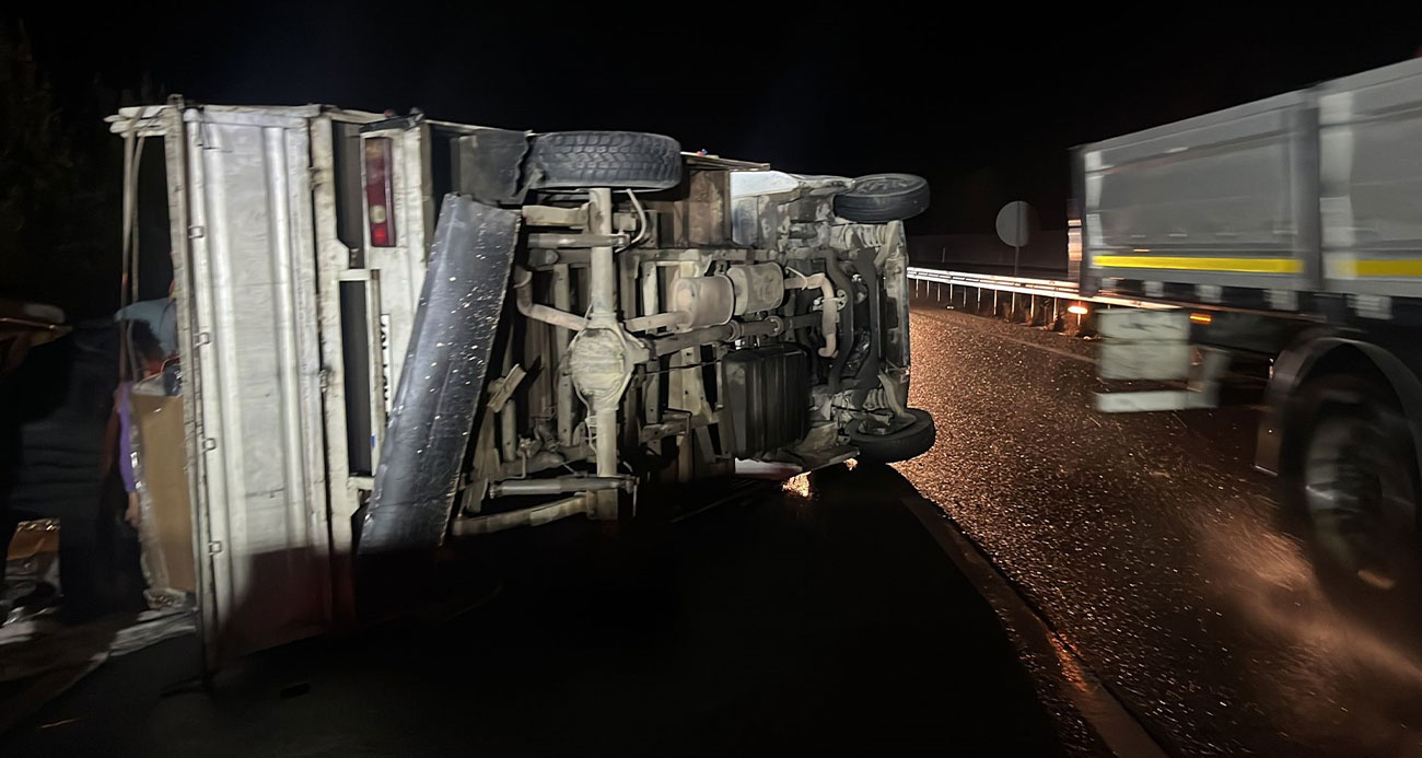 D100 karayolunda eşya yüklü kamyonet devrildi 3 yaralı