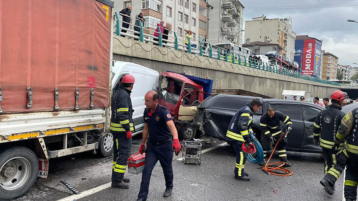 Kocaelide D100 kara yolunda 7 araç birbirine girdi