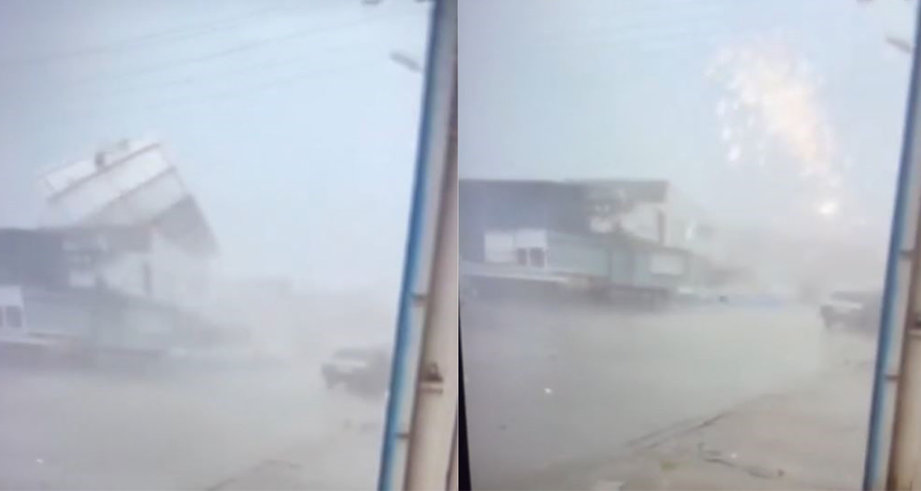 Fırtınaya dayanamayan bir binanın çatısı saniyeler içinde yok oldu