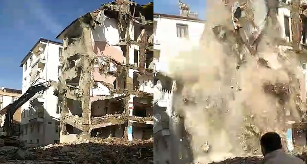 Ağır hasarlı bina ses dalgaları sonrası tek dokunuşla yıkıldı