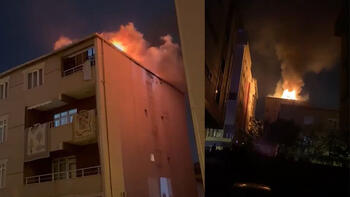 Çekmeköyde dört katlı binanın çatısı alev alev yandı