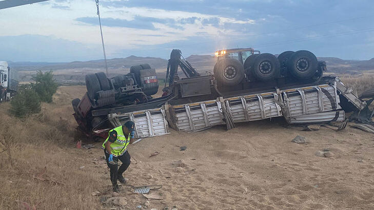 Nevşehirde virajı alamayan TIR devrildi 1 ölü 1 yaralı