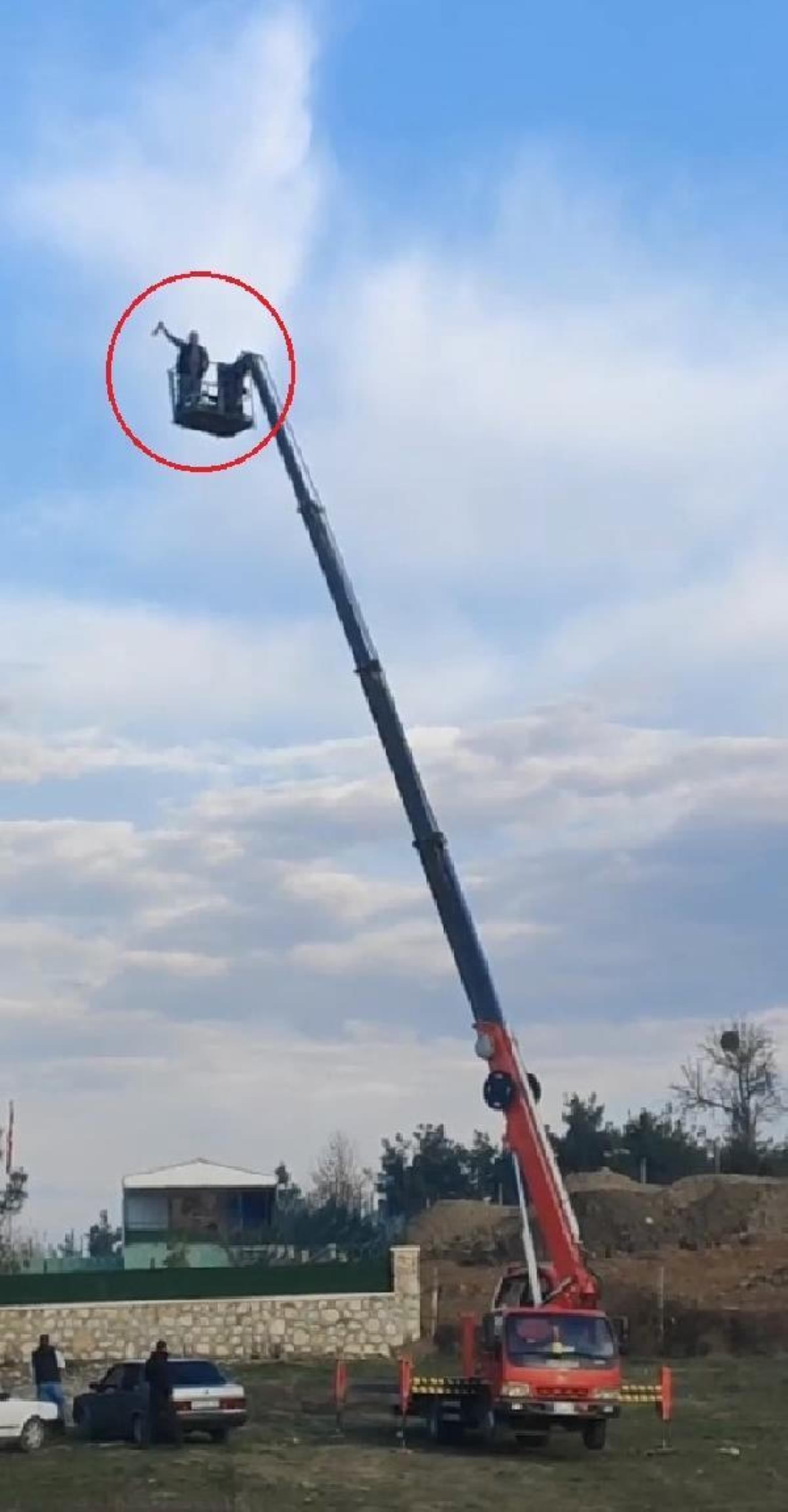 Vinç sepetinde içki içip rastgele ateş açtı o anlar kamerada