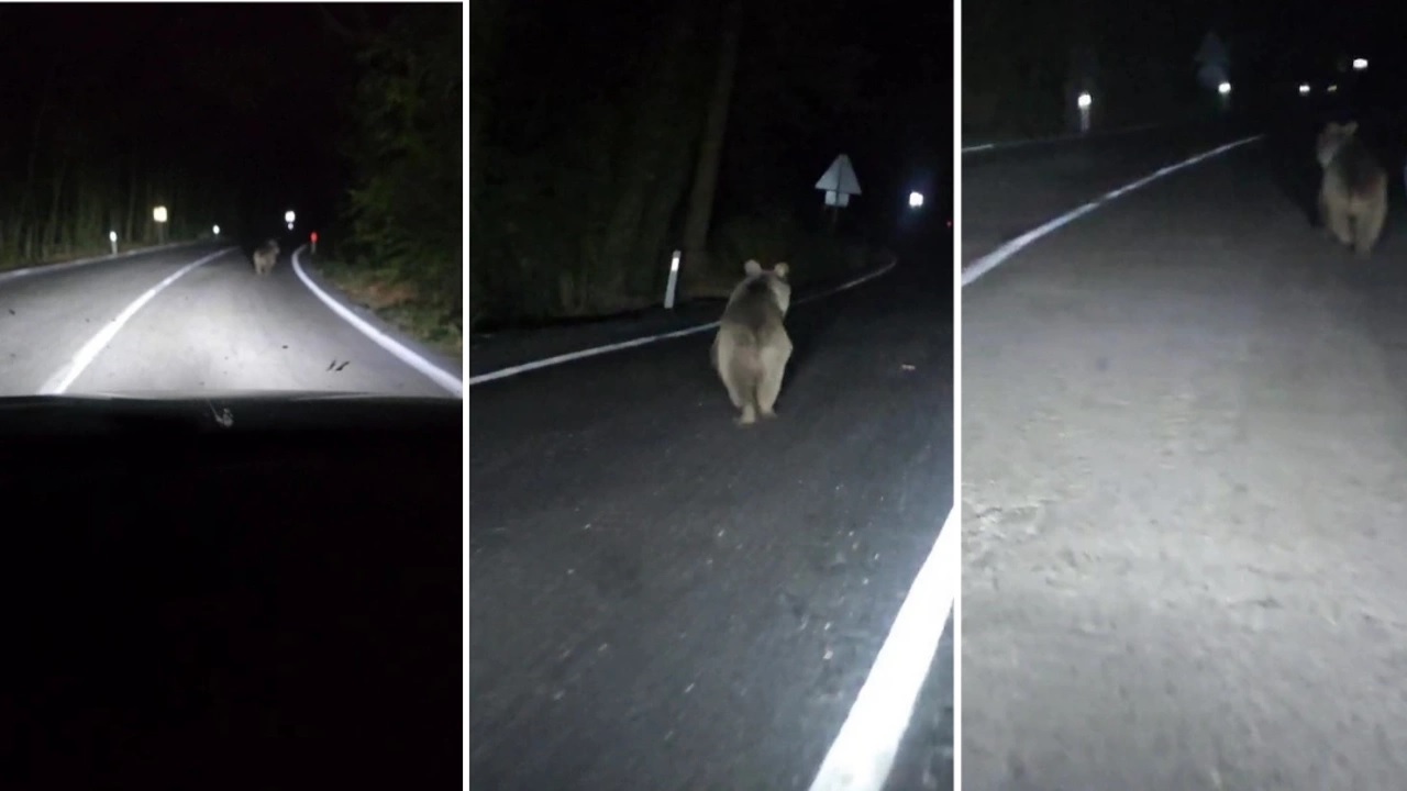 Karabükte önüne çıkan ayıyı aracıyla kovaladı