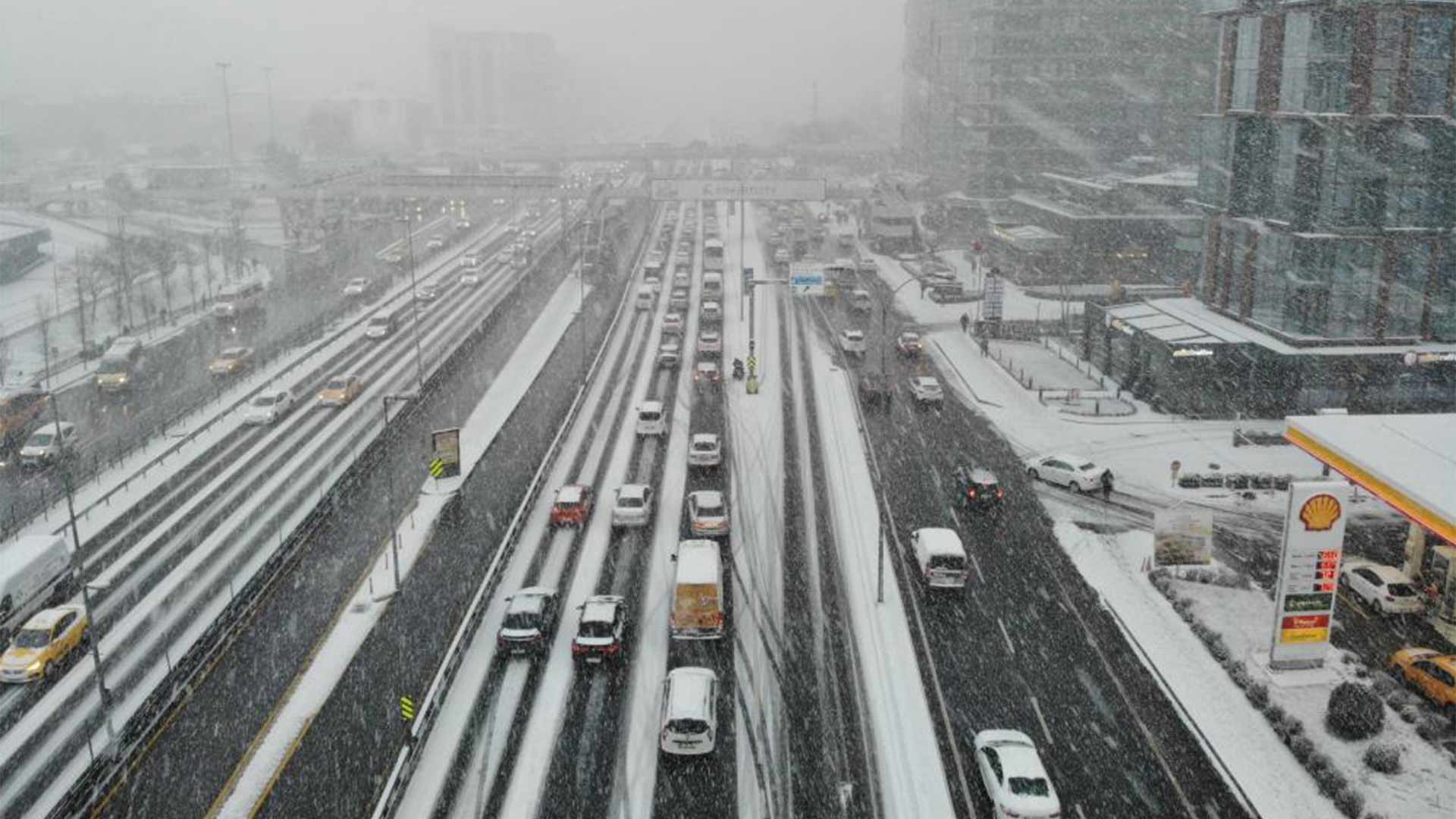 Görüntü İstanbul dan Gece yarısı bastıran kar megakenti bembeyaz yaptı
