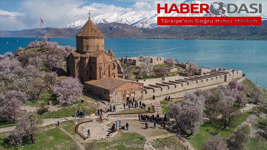 Akdamar Adası badem ağaçlarının çiçek açmasıyla baharın renklerine büründü