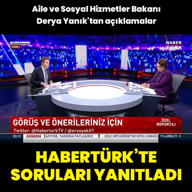 Aile ve Sosyal Hizmetler Bakanı Derya Yanık tan Habertürk e açıklamalar